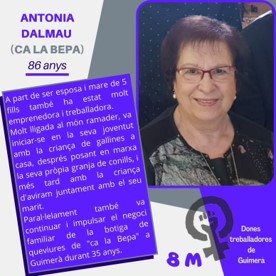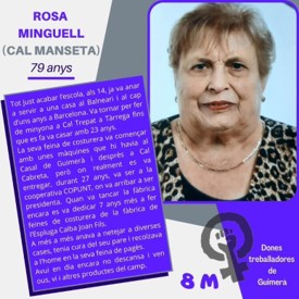 Fer un reconeixement públic de les dones treballadores de Guimerà, fent tot un treball de camp personalitzat a algunes protagonistes. L’any que ve, continuem.